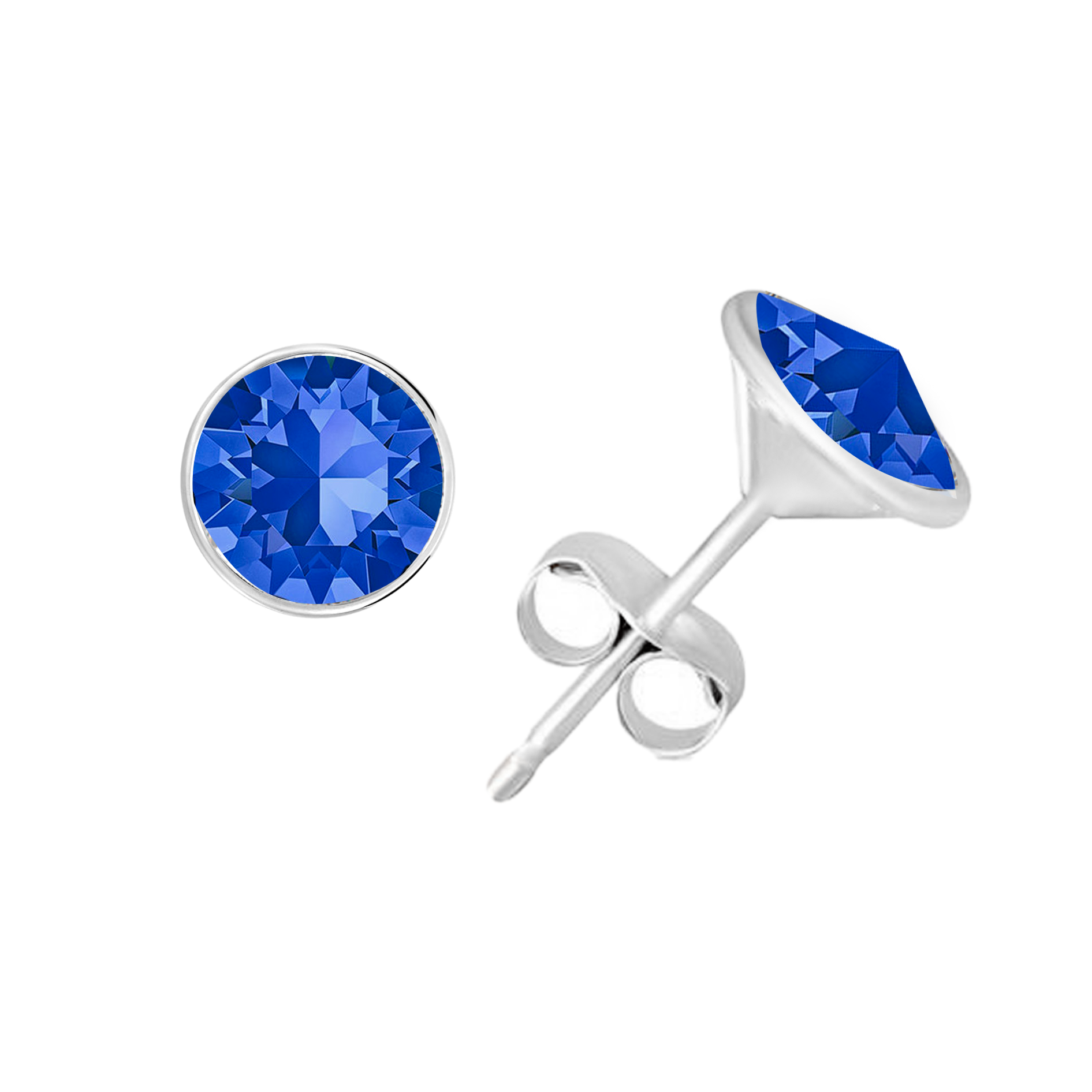 Απλά καρφωτά μονόπετρα μπλε ηλεκτρικό σκουλαρίκια από ασήμι 925 με πέτρα 7mm.