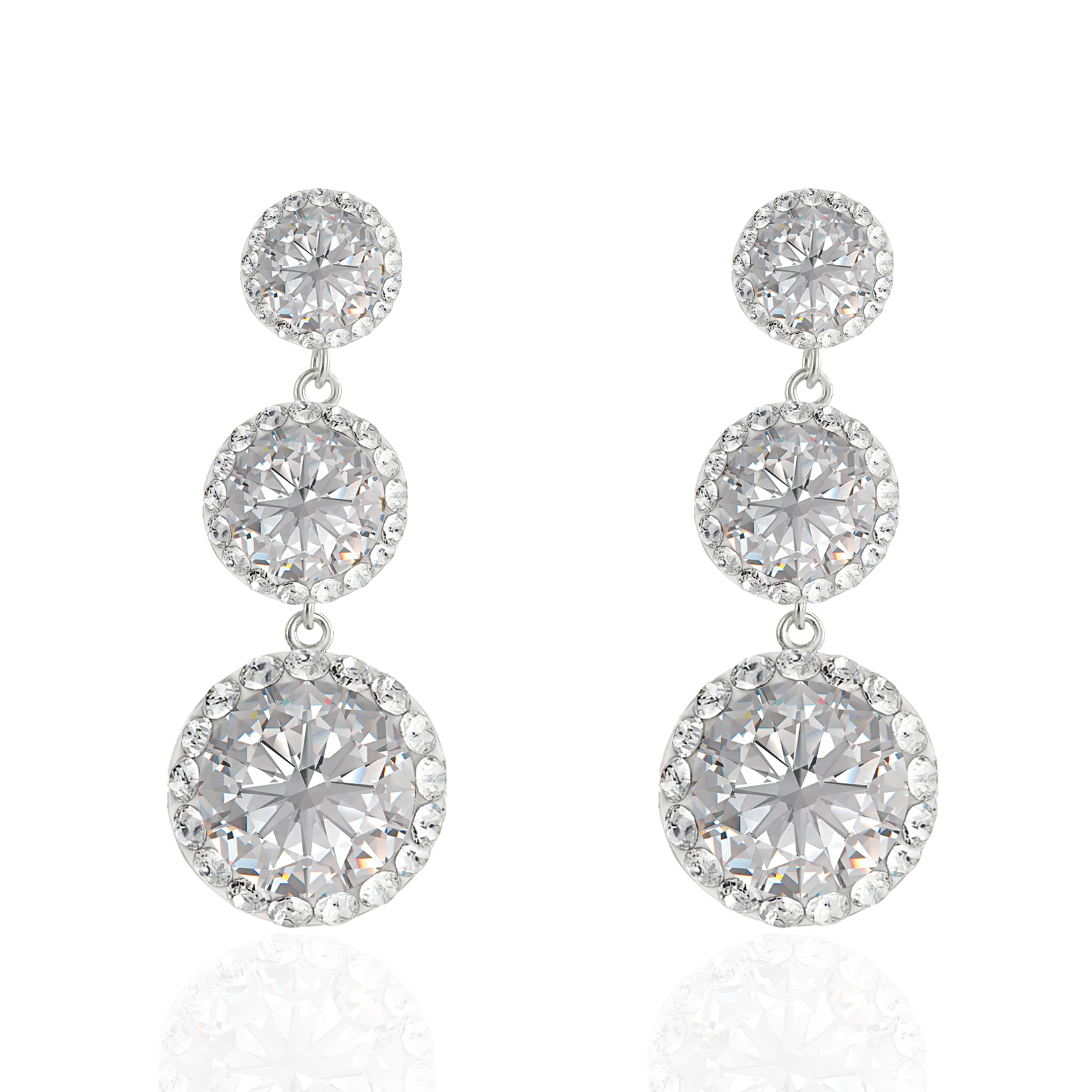 Swarovski Κρεμαστά Τριπλά Σκουλαρίκια από ασήμι 925 και λευκές Swarovski πέτρες.